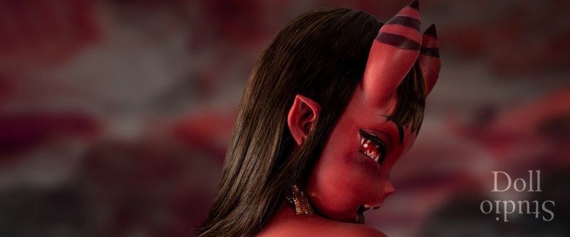 As shown above, Meru comes with huge anime/manga style eyes, pointy demon ears and a tongue. The depicted skin color is red.
