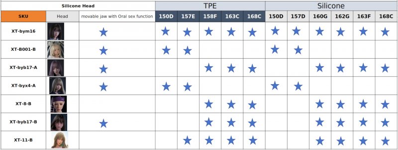 This is a life-sized silicone head. It matches with all life-sized body styles and torsos by Climax Doll. Hybrid configurations with TPE body and silicone head are supported.