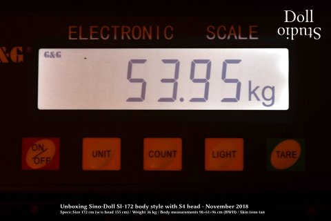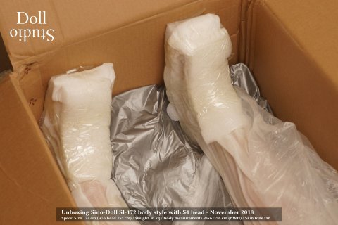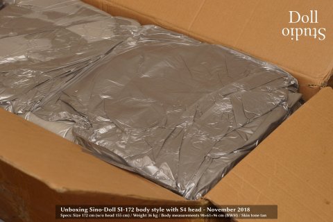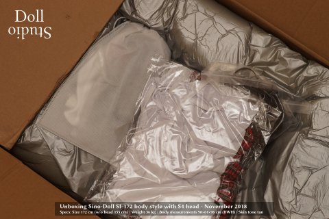 The packaging Sino-doll uses by default is identical with what we are used to from Z-Onedoll or TPE dolls. It's a neutral cardboard box. The measured total weight of the box is about 54 kg, so everything is within the dimensions to be expected.