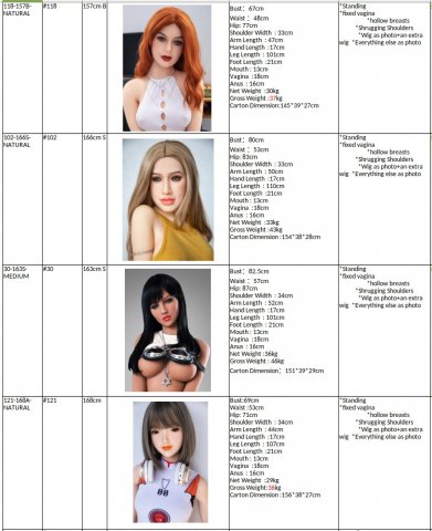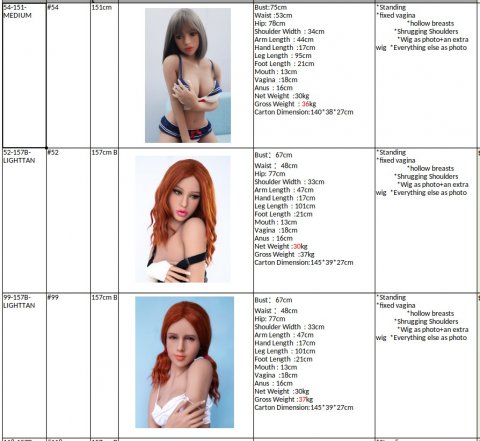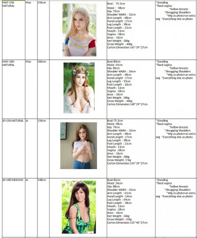 As of today, there is a total of over 80 dolls on stock in Australia, and a bit over 100 on stock in the US, so it's way too much to list all with every detail. However, here is an excerpt from the SKU list.